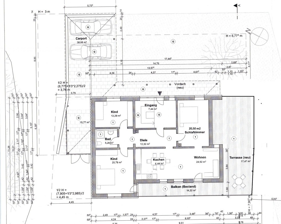 Zur Wohnung gehört ausserdem ein Kellerraum, sowie ein Carportstellplatz und 1 Aussenstellplatz.