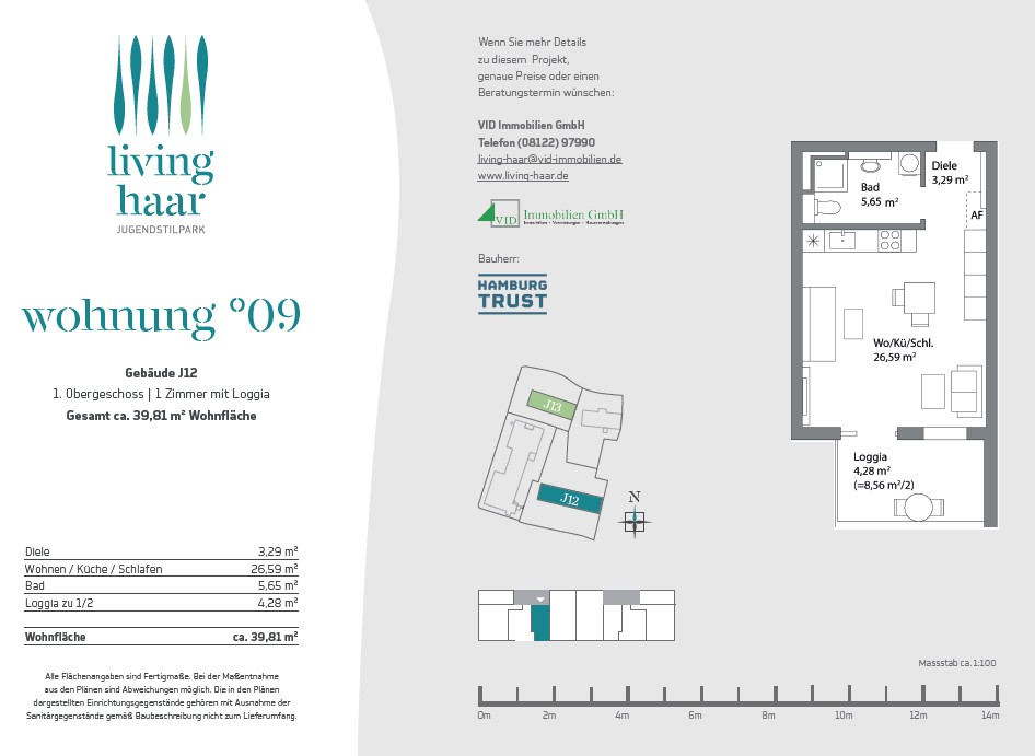 Die Wohnung befindet sich im 1. Obergeschoss eines gepflegten, neuwertigen Gebäudes in Haar. Das Stockwerk ist bequem mit dem Aufzug erreichbar. Über den Eingangsbereich, der ausreichend Platz für eine Garderobe bietet, gelangen Sie direkt in den großzügigen Wohn- und Schlafbereich. Dieser bildet den Mittelpunkt der Wohnung und schafft Raum für Wohnen, Schlafen und Arbeiten. Eine moderne Einbauküche mit hochwertigen Marken-Elektrogeräten ist bereits integriert. Von hier aus haben Sie direkten Zugang zur Loggia, die mit ihrer angenehmen Größe zu entspannten Stunden einlädt.